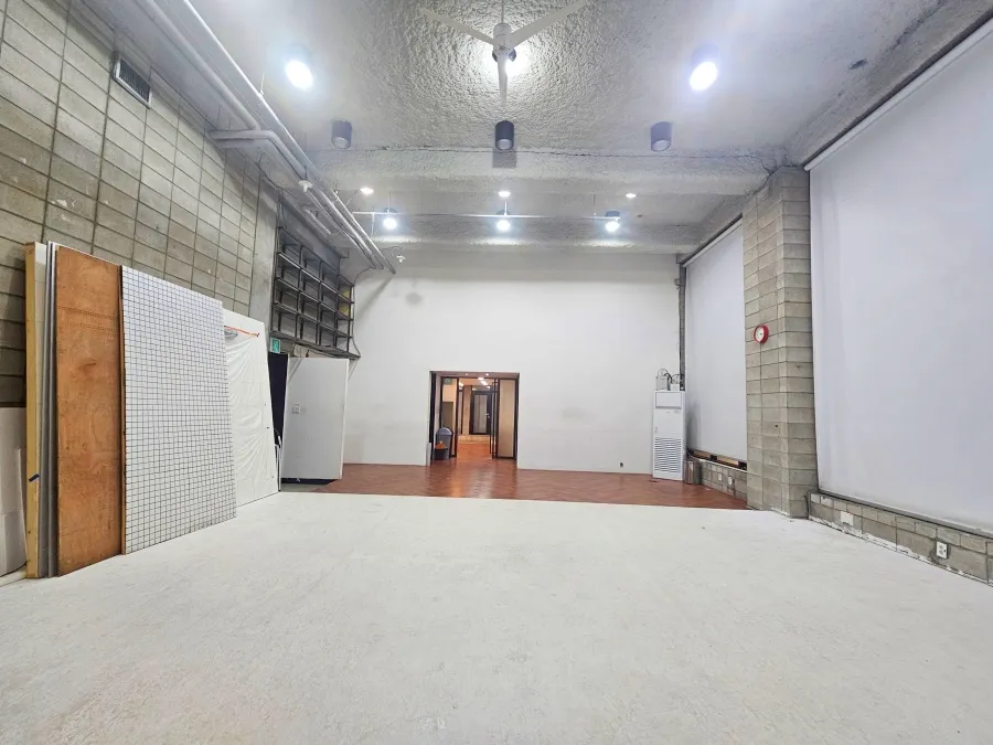 논현동 스튜디오임대 시장에서 이만한 스펙을 가진 곳을 만나기는 정말 어렵습니다. 이 스튜디오는 지하 2층에 위치함에도 불구하고, 무려 5.2M라는 엄청난 층고를 확보했습니다. 보통의 상업 공간에서 찾아볼 수 없는 개방감은 대형 세트나 역동적인 영상 촬영 시 굉장한 장점으로 작용합니다. 노출 천장 마감으로 인테리어는 트렌디하고, 스튜디오 특유의 감성이 잘 살아 있습니다. 엘리베이터가 없다는 점은 아쉽지만, 지하 공간의 장점을 살려 조용하고 집중도 높은 촬영 환경을 제공한다는 점을 고려해 봐야 합니다. 이 논현동 스튜디오임대 공간은 전용면적 53.0평(175.2m²)의 넓이를 자랑합니다. 넉넉한 공간 덕분에 촬영뿐만 아니라 갤러리, 팝업 스토어, 심지어 독특한 파티룸 용도로도 활용이 충분히 가능합니다. 공간 구획은 룸 2개와 창고로 이루어져 있어, 메인 촬영 공간 외에 장비 보관이나 분장실 등으로 분리하여 사용하기 아주 편리합니다.