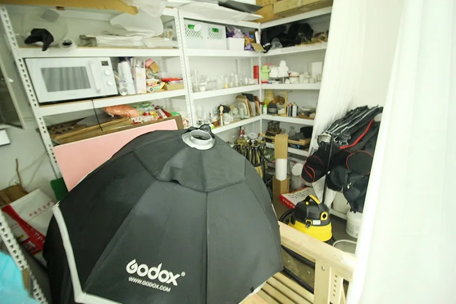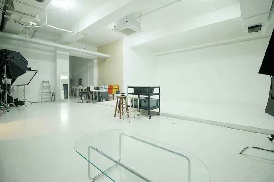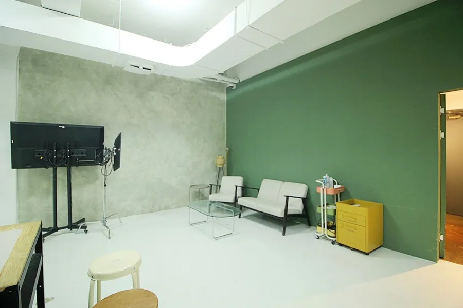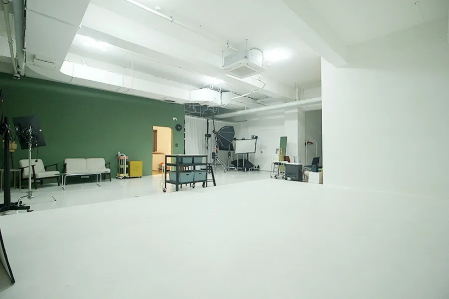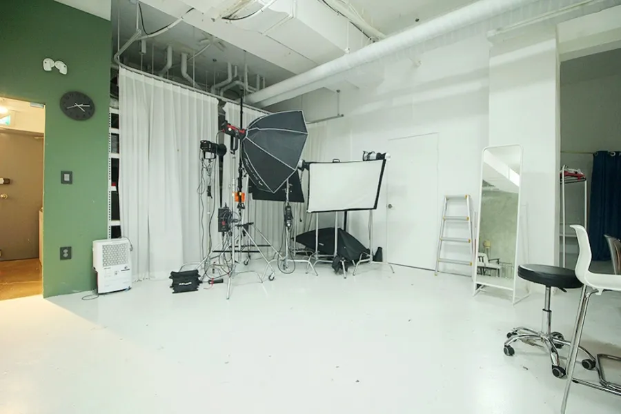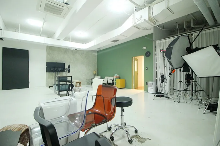 내부에 들어서자마자 3.5m에 달하는 높은 천장고가 눈에 들어왔습니다. 양재동 스튜디오 임대 물건 중에서도 이 정도 높이는 흔치 않죠. 가로 6.5m, 세로 5m 크기의 널찍한 호리존이 이미 설치되어 있어 시설비 부담을 줄이고 싶은 분들에게는 저렴한 스튜디오 임대 기회가 될 것입니다. 공간 구성도 매우 알찬데 메이크업룸과 별도의 사무용 룸, 그리고 장비 보관실과 창고까지 총 2개의 룸과 홀이 구분되어 있어 동선이 아주 효율적이었습니다. 천장형 냉난방기도 완비되어 있어 초기 세팅 비용이 거의 들지 않을 것 같네요.