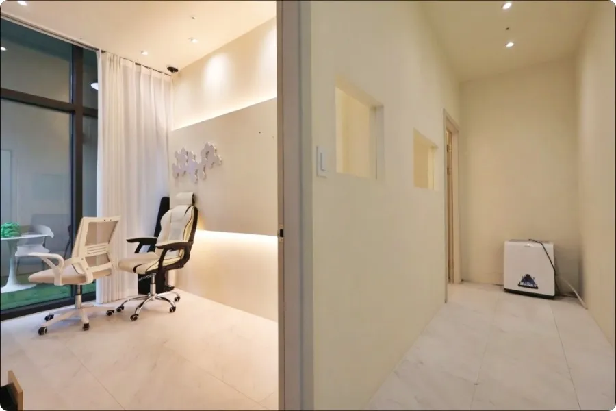 본격적으로 내부를 살펴보니 층고가 무려 4.5미터에서 5미터 내외로 설계되어 있었습니다. 청담동 스튜디오 임대 시 가장 중요하게 고려되는 요소가 바로 유효 층고인데, 이곳은 대형 호리존 작업이나 고출력 조명을 설치하기에 아주 충분한 높이를 확보하고 있었습니다. 현재 인테리어도 매우 감각적으로 되어 있어 별도의 철거 공사 없이 즉시 입주하여 바로 영업이 가능해 보였습니다. 룸 5개와 메인 촬영존, 그리고 외부 테라스까지 연결되는 동선이 진짜 효율적으로 짜여 있었습니다. 내부 화장실도 남녀 구분되어 아주 깨끗하게 관리되고 있었습니다.
