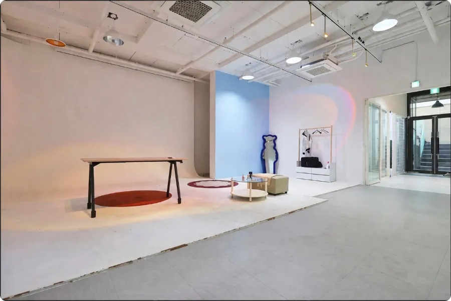 건물 외관부터 느껴지는 깔끔한 인상은 내부로 들어섰을 때 더욱 확실해졌습니다. 자연광 스튜디오 임대 매물 중에서도 보기 드문 썬큰 구조를 채택하고 있었는데, 지층임에도 불구하고 전용 계단을 통한 단독 출입구로 들어오는 빛과 공기의 흐름이 아주 원활했습니다. 정말로 지하실 특유의 답답함이나 습한 기운이 전혀 느껴지지 않는 개방감이 인상적이었습니다. 청담동 스튜디오 임대를 고민할 때 보안과 독립성을 중시한다면, 외부와 직접 연결되는 이 단독 동선은 아주 아주 큰 매력 포인트가 될 것이라 확신합니다.